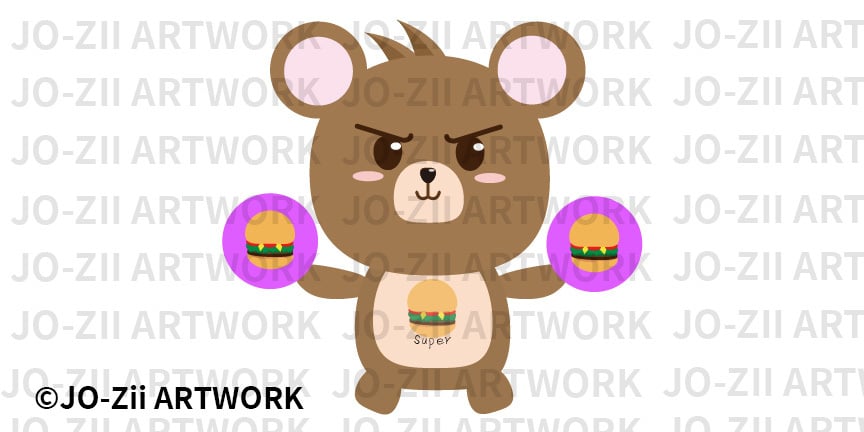 認識「Super Burger Bear」!這是一隻擁有漢堡魔力的反差萌小熊角色,適用於貼圖、海報、直播背景、商品印刷、網站素材、YouTube 縮圖等多種用途。